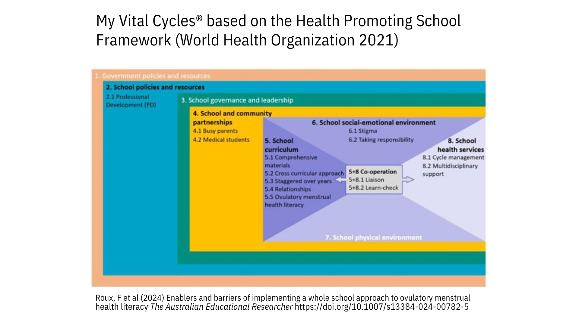 My Vital Cycles® offers a whole-school approach, partnerships and research opportunities to improving ovulatory-menstrual health literacy and wellbeing